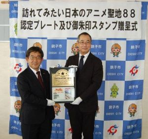長野県上田市には、アニメ聖地の「認定プレート」と「御朱印スタンプ」が贈呈され、設置されています。