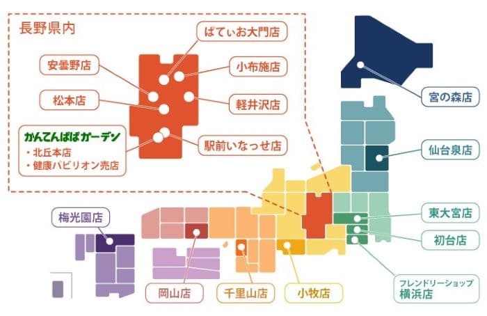 | 安曇野店 | 長野県安曇野市三郷温5911-1 HAMAフラワーパーク内 | 0263-76-5140 |