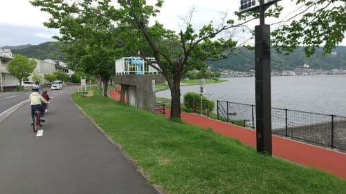 子どもが2人とも小学生になって自転車に慣れてきたので、諏訪湖をレンタサイクルで一周してきました。