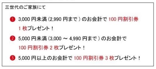 3世代で来店すると「おじいちゃん、おばあちゃん」にお食事券を進呈!