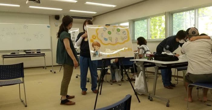 各テーブルに顕微鏡が置いてあり、スタッフの人が色々な微生物を見せてくれます。