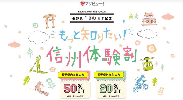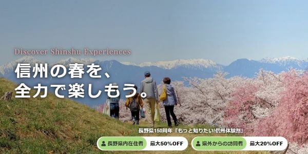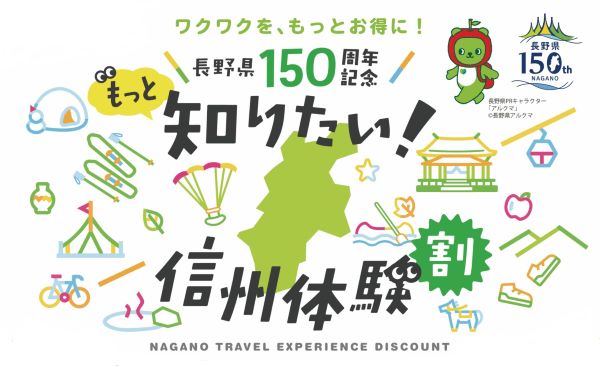 長野県ならではの自然を活用したアクティビティや、長野県の歴史・食・文化を学べる体験、施設等の利用料金の割引を行うキャンペーンです。