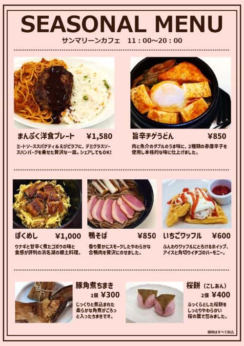 以下、メニュー表です。