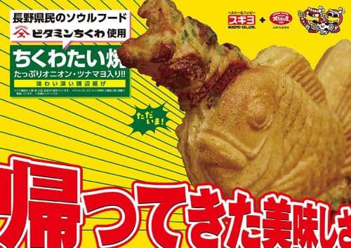長野県発祥の「焼きたて屋」と長野県民のソウルフード「スギヨのビタミンちくわ」。まさに「信州たい焼」ともいえる「ちくわたい焼 たっぷりオニオンツナマヨ入り」、是非ご賞味ください!