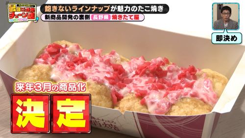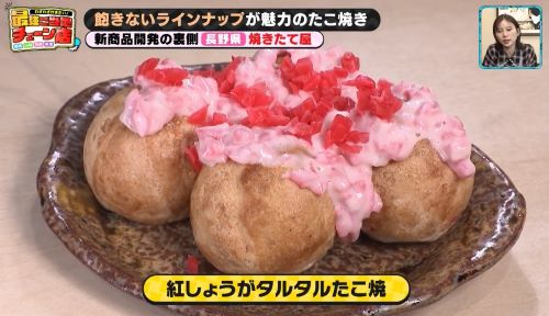 焼きたて屋、2月のたこ焼新メニューはテレビ信州の夕方の情報番組「ゆうがたGet!every.」の稲葉陽子アナウンサーと共同開発した、信州推し推しのこの一品!